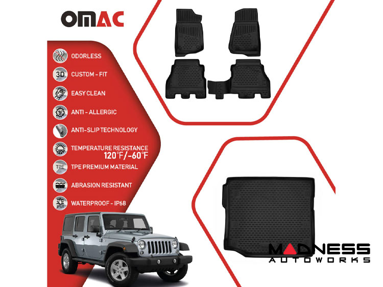 Jeep Wrangler JL Floor Liners + Cargo Liner Set - 3D Molded - Front + Rear - 4 Door (2018 - 2025)