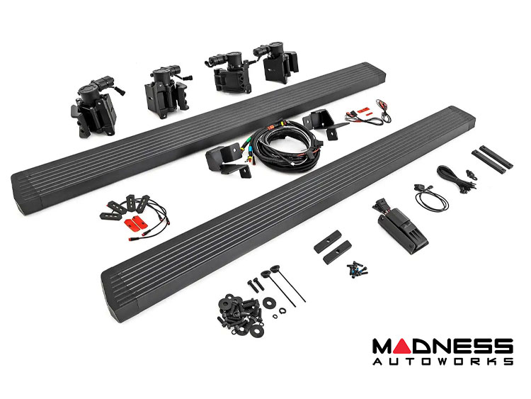 Take your Jeep Wrangler JK to the next level with Rough Country's E-Board Electric Step - Power Running Boards. These innovative side steps feature dual-motor technology that can handle extreme climate conditions with ease. The 4.75" all-season, lightweight, and durable aluminum running board comes with an anti-slip surface for a secure stepping area, making getting in and out of your ride easier than ever.
