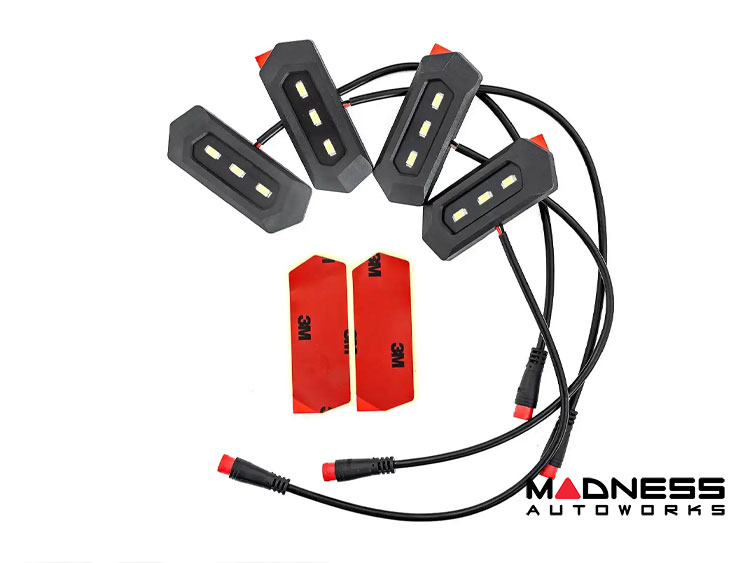 These power running boards tuck tight under the rocker panel for a clean, in-line look while providing protection. When the steps are hidden, the LED lights shut off for a sleek appearance. Models equipped with a long arm kit may require modification to the control arm bracket. Only fits 4 door models.