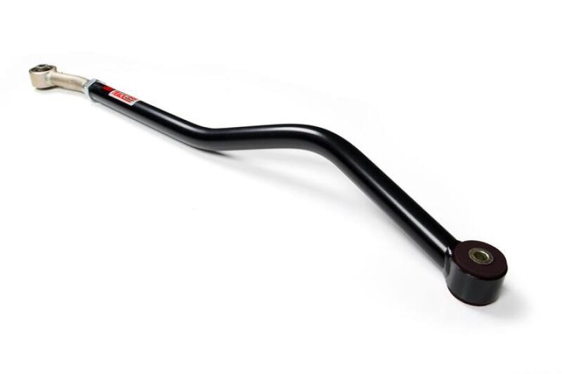 The JKS HD Front Track Bar features exceptional construction with a 1.5" OD thick wall DOM tube that is CNC bent to ensure proper geometry and maintain necessary clearances under the front of your Jeep. The track bar's fine adjustment threads and 1.5” jam nut offer precise axle alignment and secure locking. For added protection against wear and tear, it is finished with a durable gloss black powder coat and a zinc-plated end, providing superior corrosion resistance.
