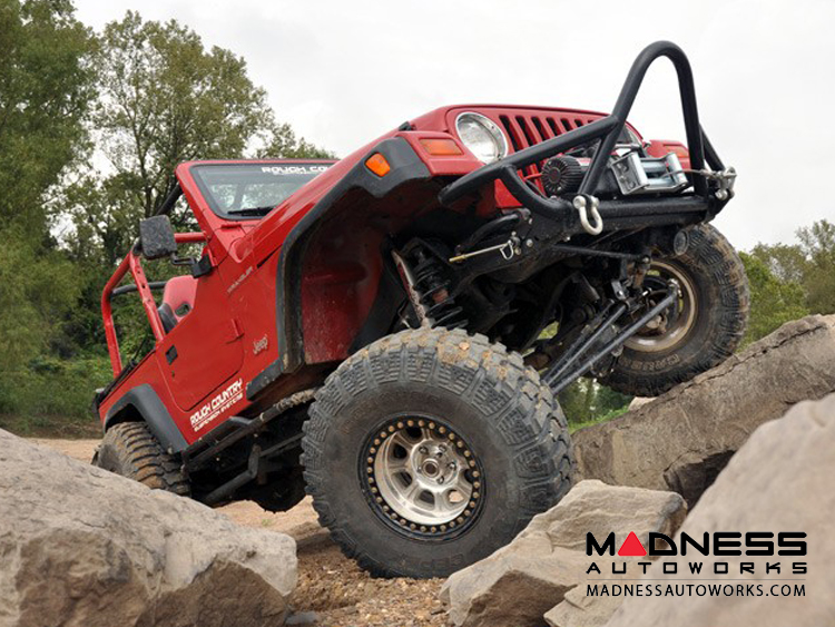 The 3.5in Suspension Lift includes front and rear coil springs with a linear coil rate that promotes incredible handling while retaining more lift height under load than other designs. For an impressive ride quality both on and off-road, this kit also includes Rough Country’s nitrogen-charged N3 shocks. These 10-stage variable valving shocks feature a durable 18mm spring loaded piston rod, huge 54mm shock body, and reinforced seals for a long lifespan of smooth performance. A set of control arm drop brackets allow you to retain the factory arms at the proper geometric angle for great handling and a smooth highway ride. Better still, this kit features sway-bar links, bump stops and a front, adjustable forged track bar which helps keep your axles tame even under demanding off-road action and is easy to adjust on the vehicle.