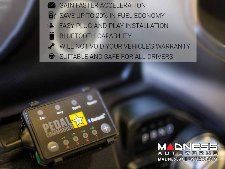 Now available with Bluetooth, you can download the Pedal Commander app from the Google Play Store or from the Apple Store. The new Bluetooth system offers a more unique and user friendly way to control your Pedal Commander unit. The Pedal Commander App allows for an end user to completely tuck away the PC system and control all of the functions directly from their phone, receive updates for new map and user programs instantly and gives you a wide range of options to adjust your Pedal Commander settings.