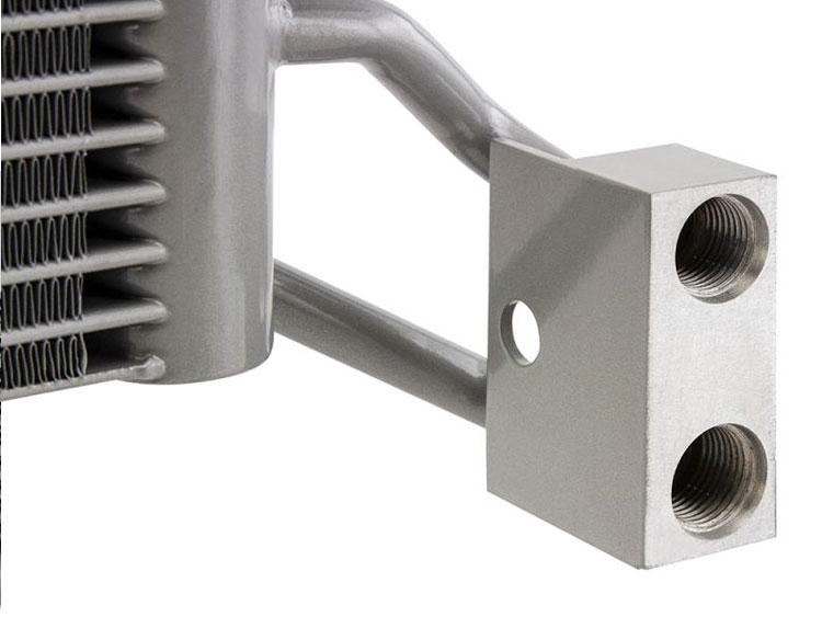 The Mishimoto transmission cooler also features unique fins within the tubes to add even more cooling surface area and make sure that all of the fluid is in contact with a cooling surface. This feature, combined with the 83% increase in fluid capacity, means that no matter how low the airflow is, your transmission will stay safe and cool.