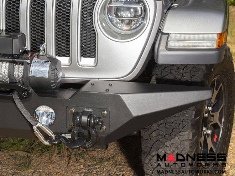 The Spartan Front Bumpers one-piece design features our standard bumper ends, giving you full-width protection while making a bold, powerful styling statement. Each bumper is built from high-strength plate steel that utilizes fold & weld construction for greater structural integrity, precise fit and a high-quality appearance. A tough satin black powder coat finish resists rust and corrosion, keeping your Spartan bumper looking and performing great for years to come. Each bumper includes a stand-alone winch plate as the central backbone for the bumper and includes D-shackle mounts to complete the package (D-rings not included). The Spartan Front Bumper is a direct bolt-on replacement for 2018-2019 Wrangler JL and Gladiator JT models and includes all the necessary hardware for a worry-free installation. The Spartan even utilizes the factory Sahara or Sport fog lights for a finished look without any added expense. Best of all, it’s backed by our industry-leading 5 year limited warranty, making it the best built, budge-minded bumper on the market today. Patent Pending