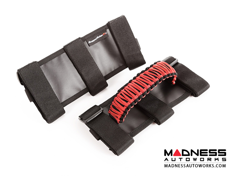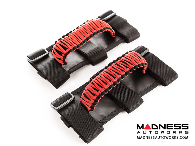 Jeep Gladiator Para Cord Grab Handles - Red on Black - Pair