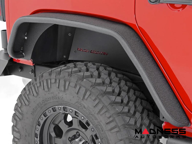 Rough Country’s Tubular Front and Rear Fender Flares provide incredible clearance and aggressive, good looks. With a sleek profile, these durable flares offer awesome off-road articulation, with a two-stage epoxy coat and long-lasting black powder coat for a great looking flare year over year.