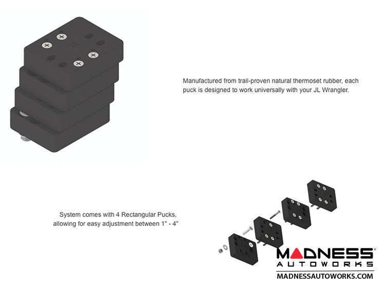 A seamless integration with the factory platform; everything works perfectly. Duroflex and Durotrac bushings eliminate squeaks and clunks while providing maintenance free flex. True Dual-Rate Coils give a smooth yet stable ride with incredible load carrying capability and one of the longest free lengths available. Perfectly tuned shock valving designed around MetalCloaks Dual-Rate Coils, Duroflex and Durotrac Joints give you what you want in a daily driver and excel in everything from moderate to the off-road extremes.