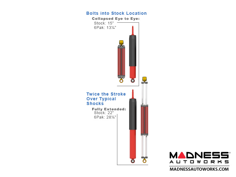 - 6Pak shocks provide 15" (front & rear) of shock travel!