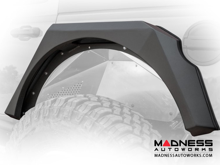 These Off-Road Armor-Style Fenders come with vents and integrated LED turn signals, turning the entire package into an all-in-one safety boost for your Wrangler. Offering maximum clearance and protection for your Jeep, these fenders also features uniquely shaped flares that help keep dirt and dust off your Wrangler. With these armor-style fenders, you can prove that clearance and protection can definitely come hand in hand.
