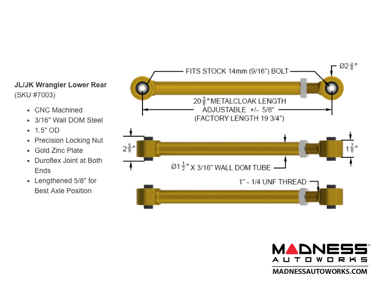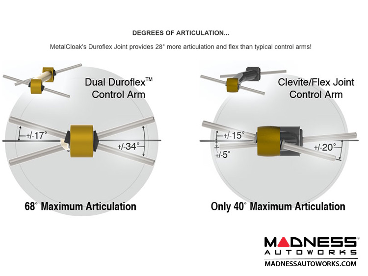 MetalCloak Jeep Wrangler JL Dual-DuroflexTM Adjustable Control Arms offers all the adjustability and strength you need on your lifted Jeep Wrangler JL and is a vital step in ensuring a comfortable ride and ultimate performance, both, on and off road.