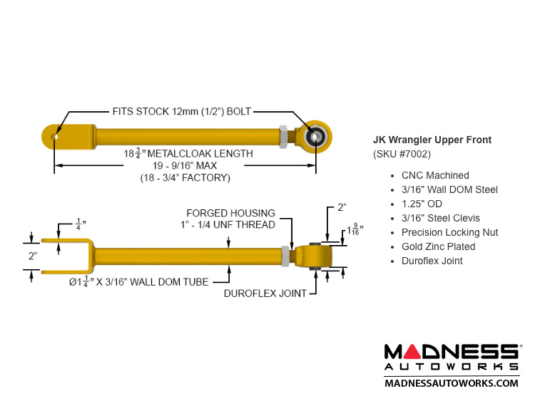 - Fully Adjustable Solid Chromoly front Durotrak track bar increases ride stability.