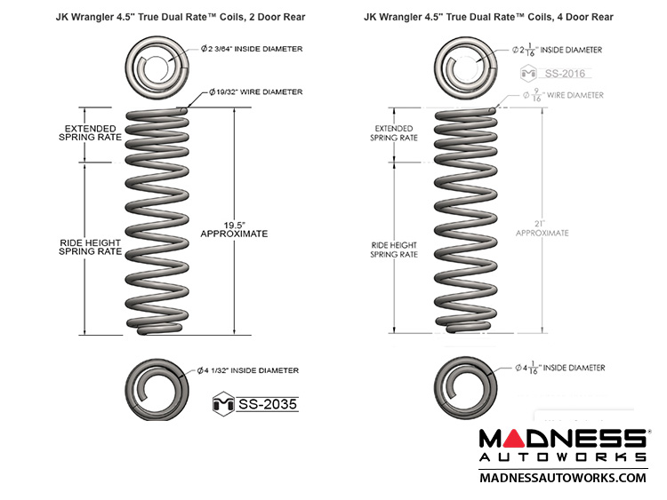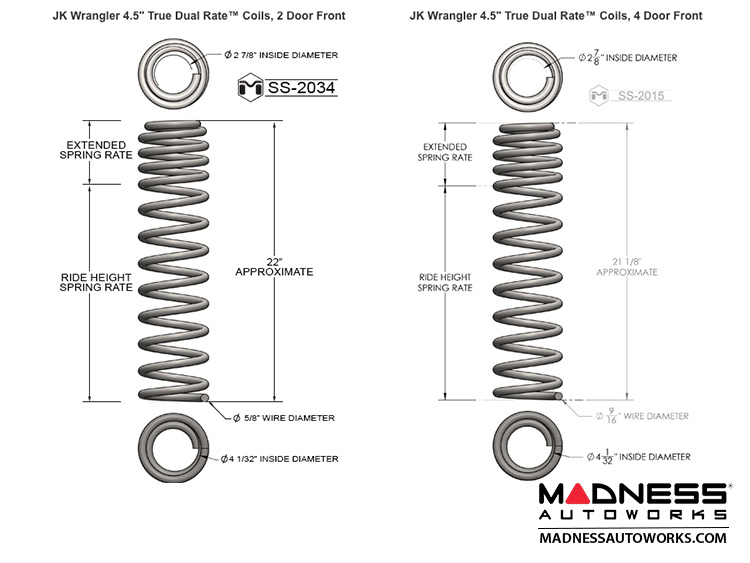 True Dual Rate™ Coils that provide a more comfortable ride than traditional single rate lift springs and feature better load handling stability than typical "progressive" or "multi-rate" coils.