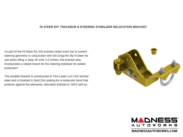 - Fully Adjustable Solid Chromoly front Durotrak track bar increases ride stability
