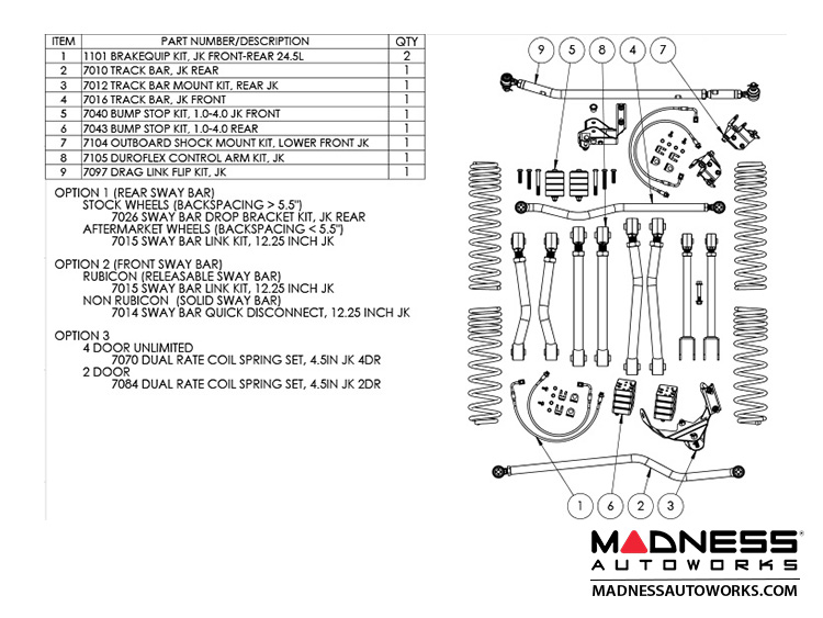 - All 2012+ JK Wrangler will require exhaust spacers (7078) for clearance for the front drive shaft.