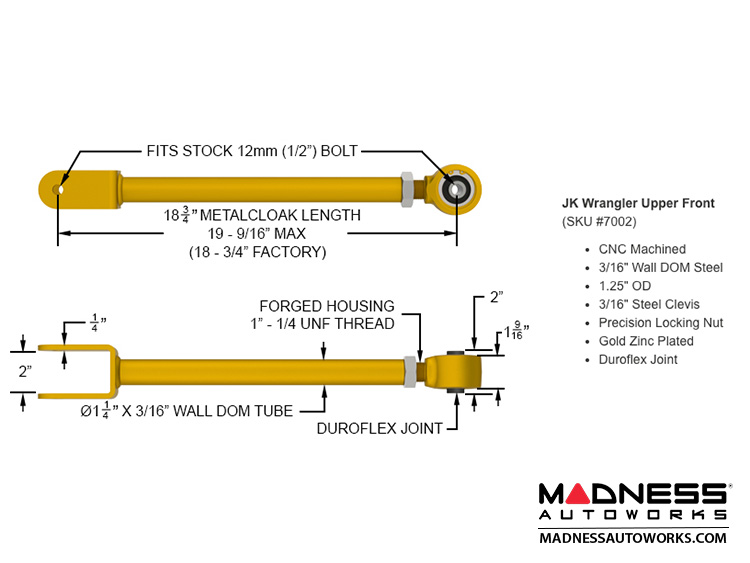 Featuring the latest in suspension technology including the MetalCloak True Dual Rate™ Coils, Duroflex™ Control Arms with our patented Duroflex Joint, along with patented front & rear Duratrak equipped Solid Chromoly Track Bars.