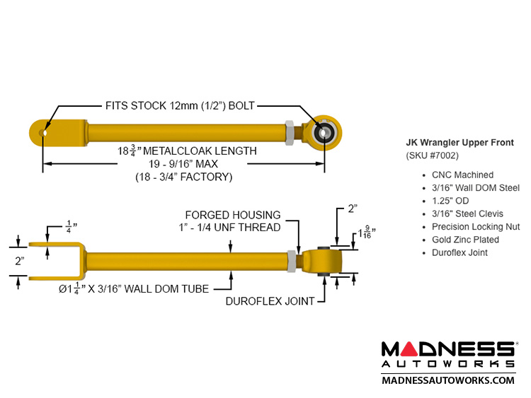 • Fully adjustable Solid Chromoly front Durotrak track bar increases ride stabibility.