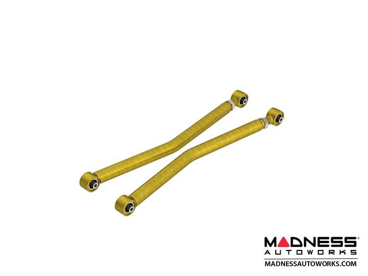 The JK Wrangler 4-Link Long Arm Compound Suspension System, 4.5"/5.5", No Shock Edition is a weld-on Long Arm suspension system. The weld-on brackets for the upper front control arms provide the best pinion angle control for high-speed off-road wheeling.