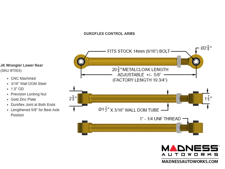 - High-Misalignment Vibration Dampening Duroflex™ Front Long Arms