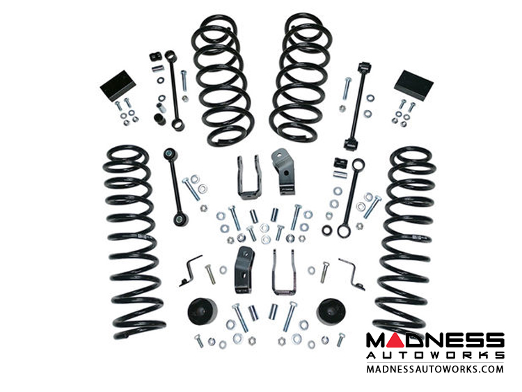 Pro Comp provides front and back lifted coil springs in this 2.50" Lift Kit. They are engineered for impact absorption and coated to help keep away rust. A lift kit requires altering the rear track bar. This Pro Comp Lift Kit comes with a rear track bar bracket that adjusts so you can improve vehicle stability.