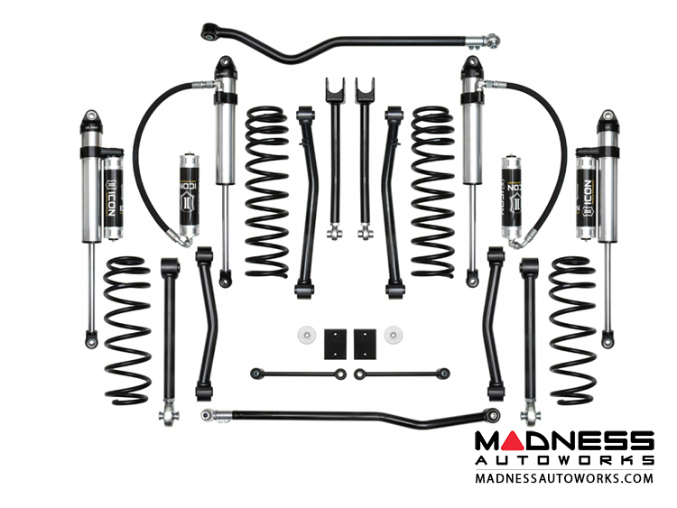 Through an accelerated testing process dubbed the “ICON1K” R&D program, manufacturer has logged over a thousand miles in the dirt pushing the JL to off-road extremes to identify limiting factors in OE components, develop products that remove these limits, and further extrapolate performance out of this vehicle. This 2.5” suspension system has been tweaked, tuned, and revised several times over the course of this testing in an effort to provide unparalleled ride quality and vehicle dynamics for everything from rock crawling to high-speed desert running.